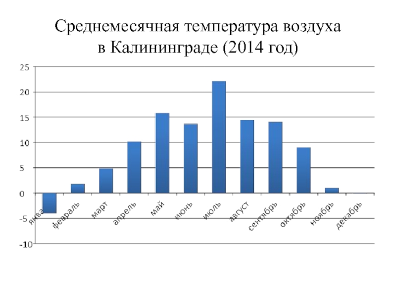 Слайд 3Среднемесячная температура воздуха в Калининграде (2014 год)
