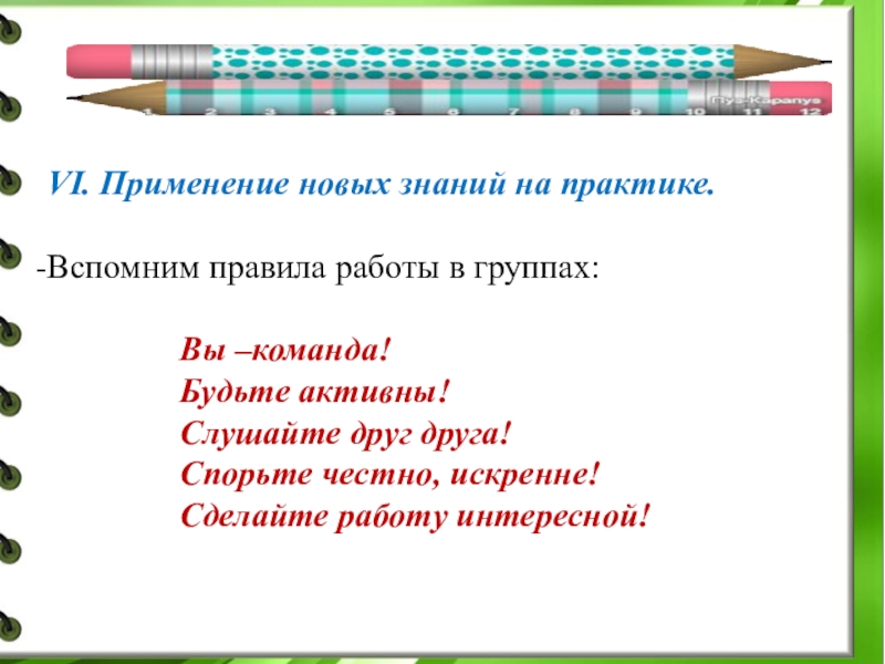 Слайд 23VI. Применение новых знаний на практике.