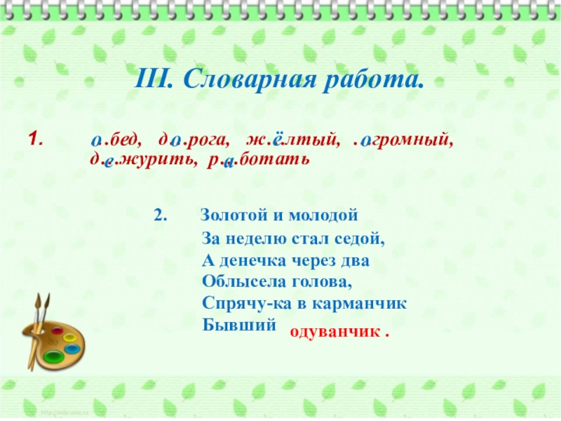 III. Словарная работа.