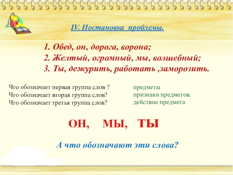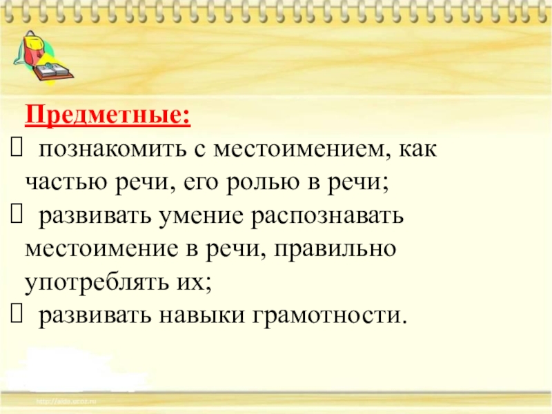 познакомить с местоимением, как частью речи, его ролью в речи;
