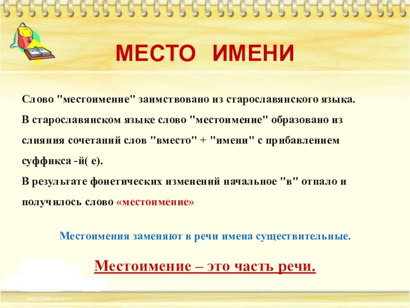 Местоимение – это часть речи, которая не называет предмет, а