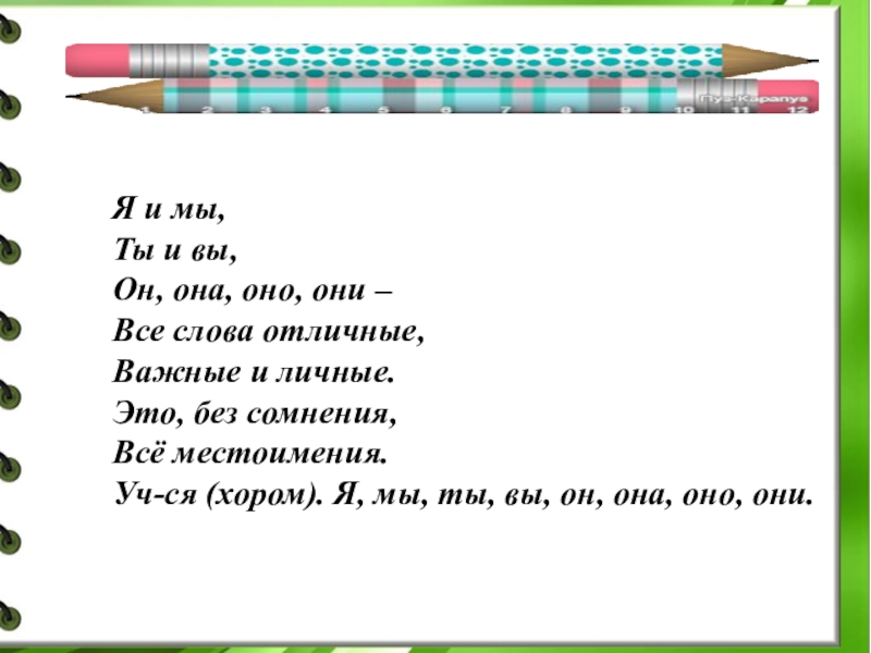 Уч-ся (хором). Я, мы, ты, вы, он, она, оно, они.
