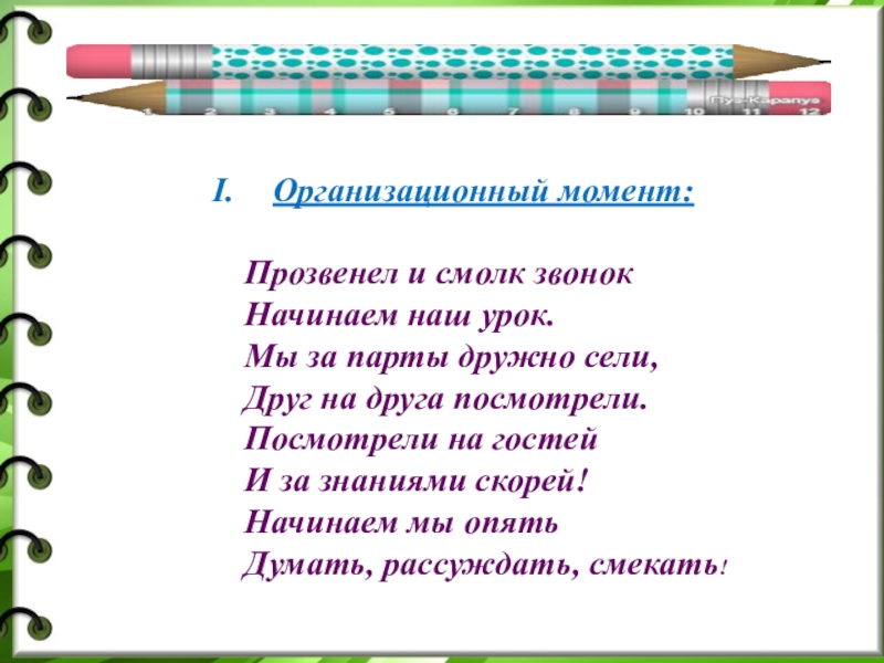 Слайд 8Организационный момент: