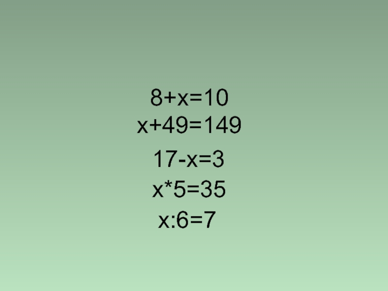 8+х=10х*5=35 х+49=14917-х=3х:6=7