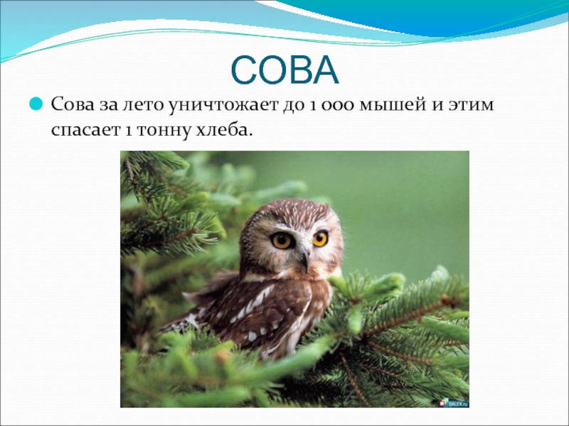 СОВАСова за лето уничтожает до 1 000 мышей и этим спасает 1 тонну хлеба.