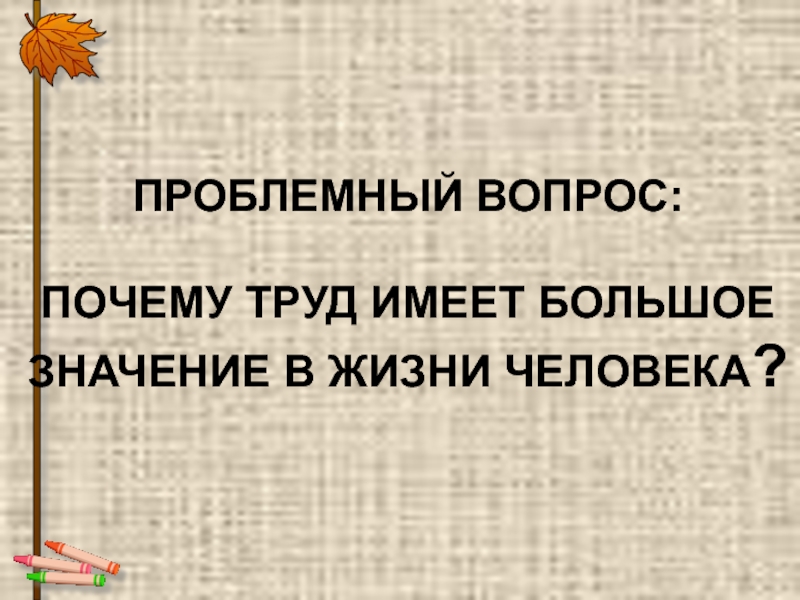 ПРОБЛЕМНЫЙ ВОПРОС:ПОЧЕМУ ТРУД ИМЕЕТ БОЛЬШОЕЗНАЧЕНИЕ В ЖИЗНИ ЧЕЛОВЕКА?