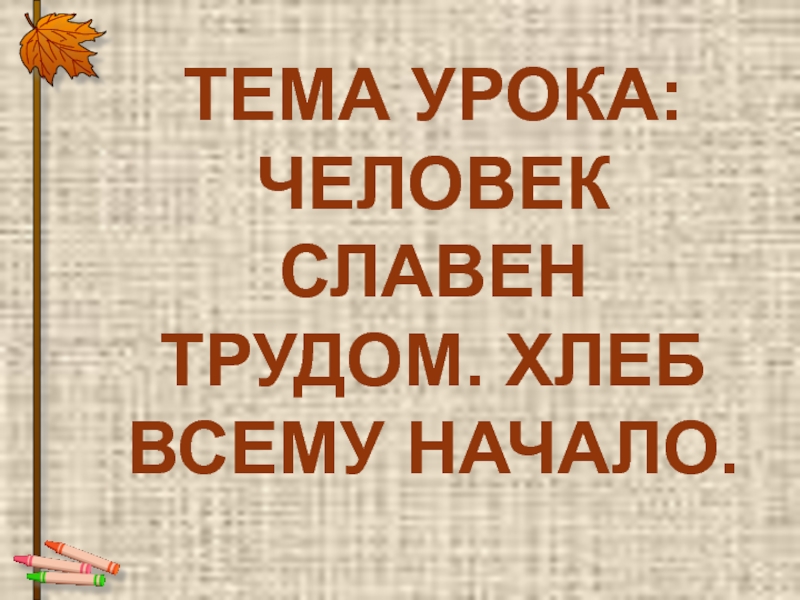 Слайд 22ТЕМА УРОКА: ЧЕЛОВЕК СЛАВЕН ТРУДОМ. ХЛЕБ ВСЕМУ НАЧАЛО.