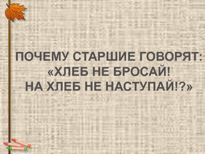 ПОЧЕМУ СТАРШИЕ ГОВОРЯТ:«ХЛЕБ НЕ БРОСАЙ!НА ХЛЕБ НЕ НАСТУПАЙ!?»