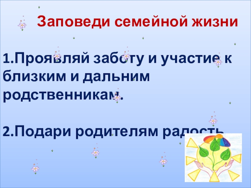 Заповеди семейной жизни  1.Проявляй заботу и участие к близким и дальним