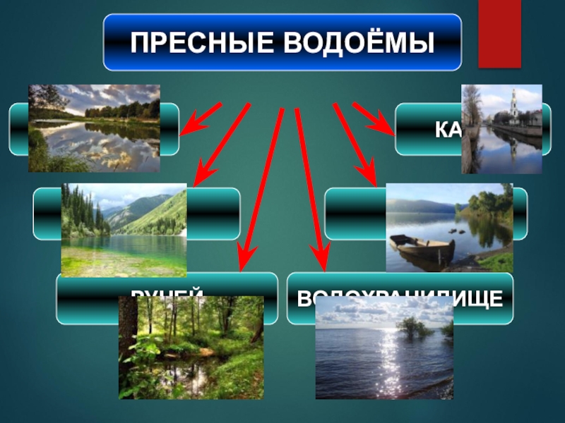 ПРЕСНЫЕ ВОДОЁМЫРЕКАОЗЕРОРУЧЕЙКАНАЛПРУДВОДОХРАНИЛИЩЕ