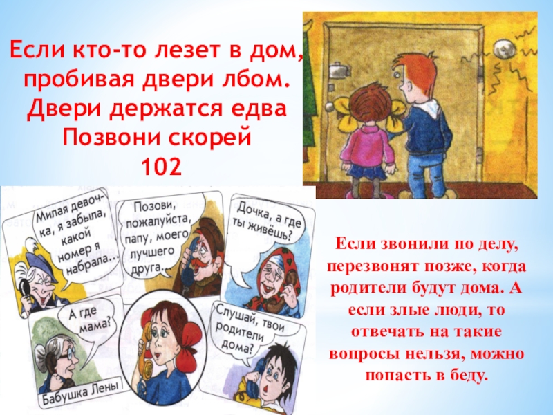 Если звонили по делу, перезвонят позже, когда родители будут дома. А если злые люди, то отвечать на такие вопросы нельзя, можно попасть в беду.
