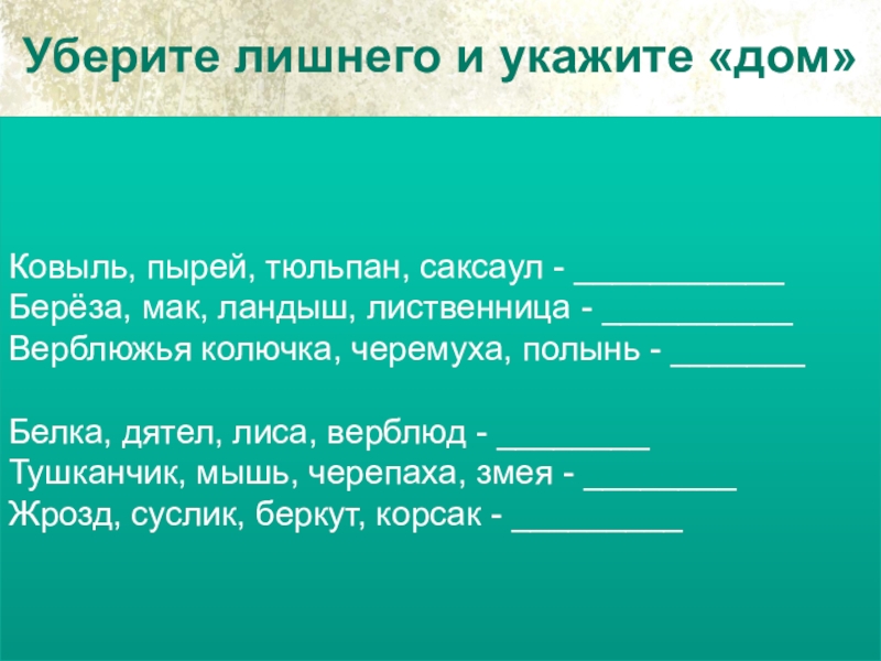 Ковыль, пырей, тюльпан, саксаул - ___________
