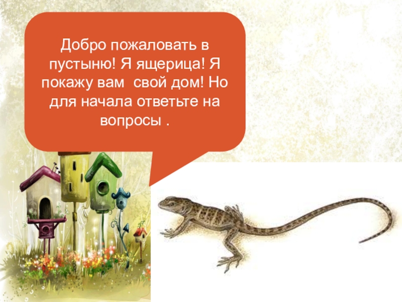 Слайд 15Добро пожаловать в пустыню! Я ящерица! Я покажу вам свой дом!