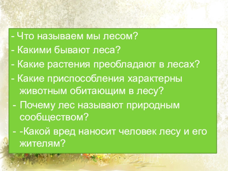 Вот вам несколько вопросов и задание, выполните их, и лес покажет вам свои красоты.