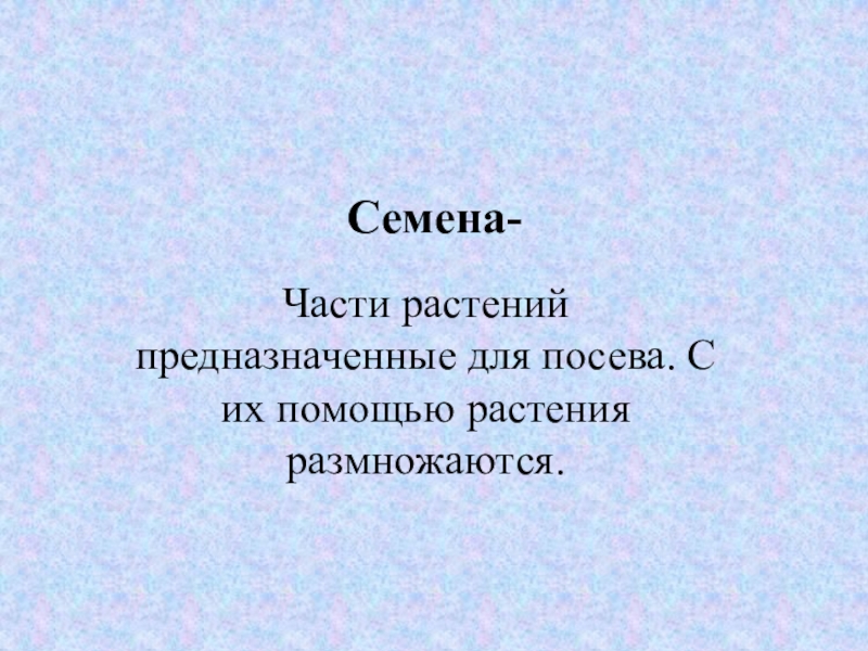 Семена-  Части растений предназначенные для посева. С их помощью растения размножаются.