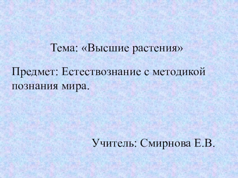 Тема: «Высшие растения»Предмет: Естествознание с методикой познания мира.