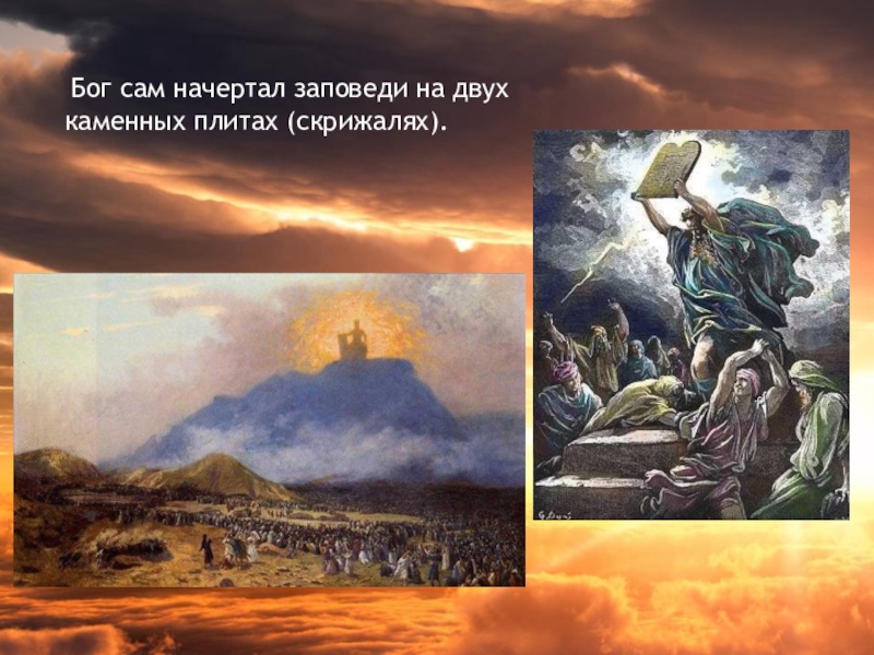 Слайд 4 Бог сам начертал заповеди на двух каменных плитах (скрижалях).