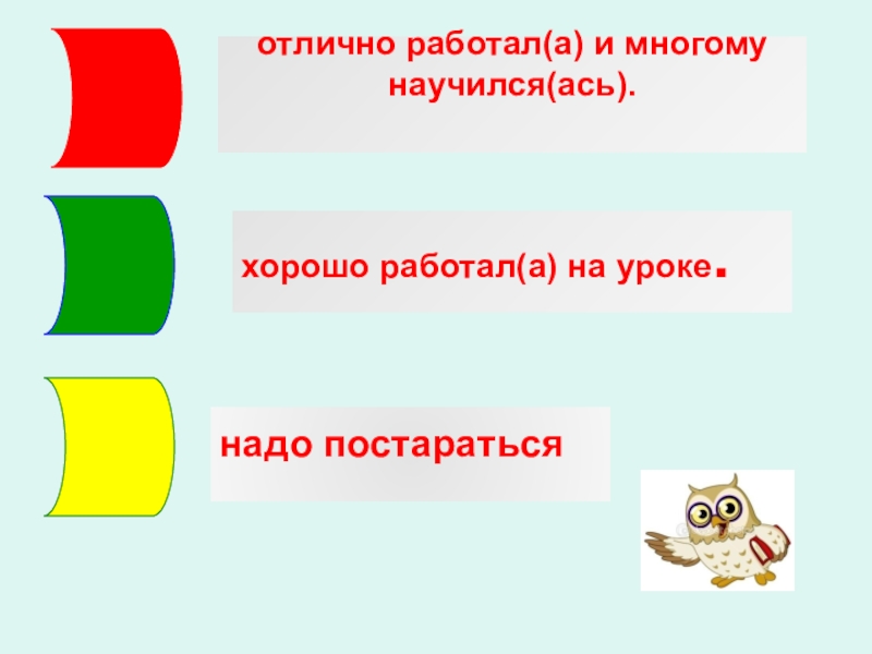 хорошо работал(а) на уроке. отлично работал(а) и многому научился(ась).  надо постараться