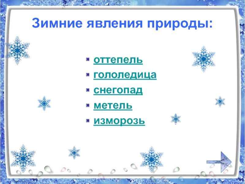Слайд 7Зимние явления природы: