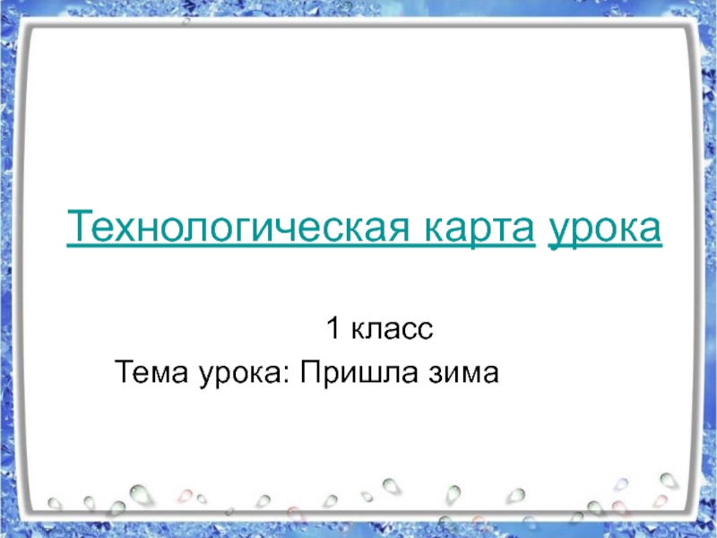 Технологическая карта урока1 класс Тема урока: Пришла зима
