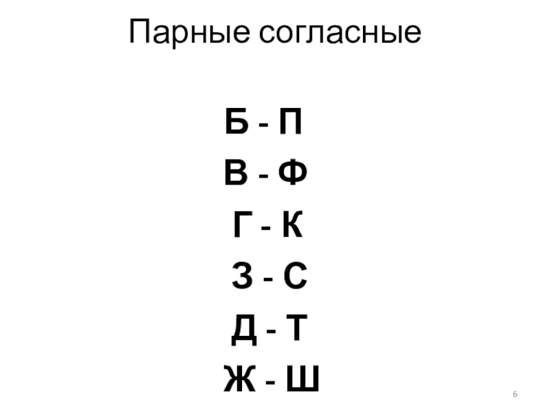 Слайд 6Парные согласные