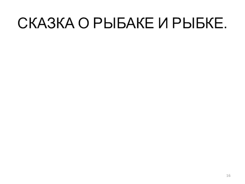 Слайд 16СКАЗКА О РЫБАКЕ И РЫБКЕ.
