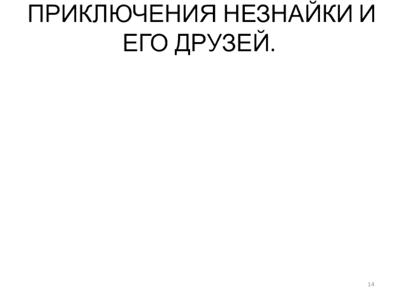 Слайд 14ПРИКЛЮЧЕНИЯ НЕЗНАЙКИ И ЕГО ДРУЗЕЙ.