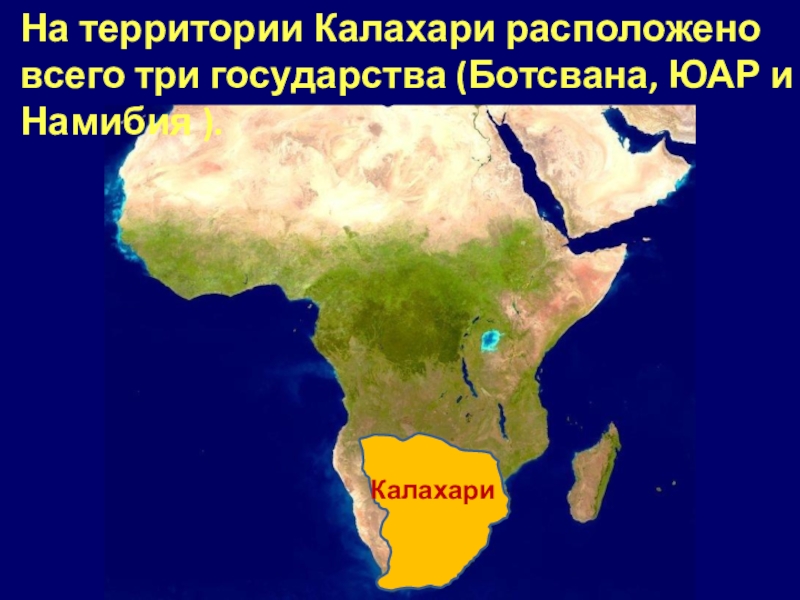 На территории Калахари расположено всего три государства (Ботсвана, ЮАР и Намибия