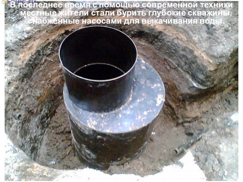 Слайд 19В последнее время с помощью современной техники местные жители стали бурить