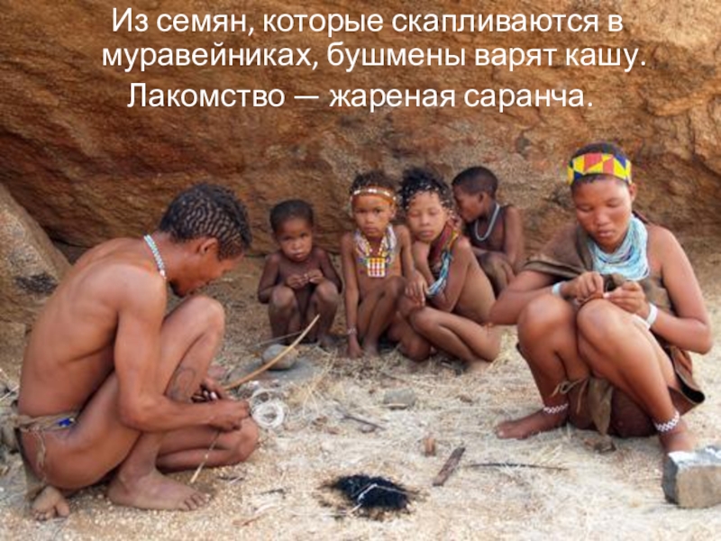 Слайд 46 Из семян, которые скапливаются в муравейниках, бушмены варят кашу.