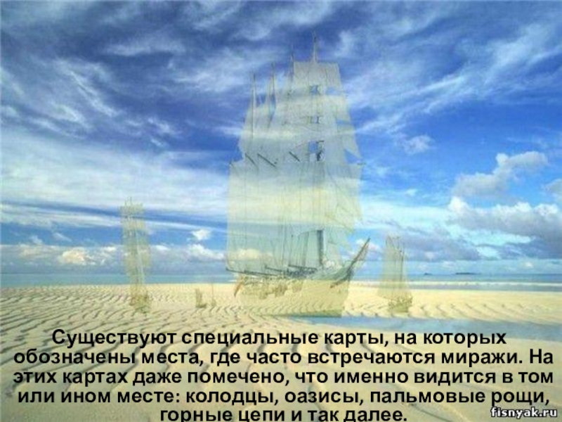 встречаются миражи. На этих картах даже помечено, что именно видится в том или ином месте: колодцы, оазисы, пальмовые рощи, горные цепи и так далее.