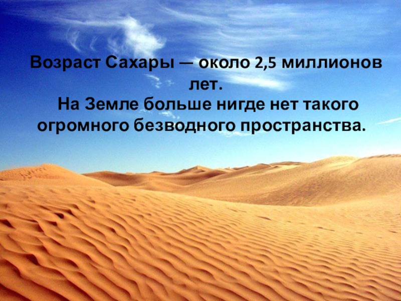 Возраст Сахары — около 2,5 миллионов лет.