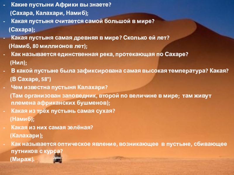 (Сахара, Калахари, Намиб);