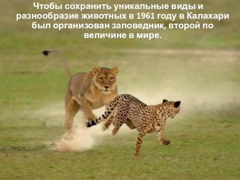 Калахари был организован заповедник, второй по величине в мире.