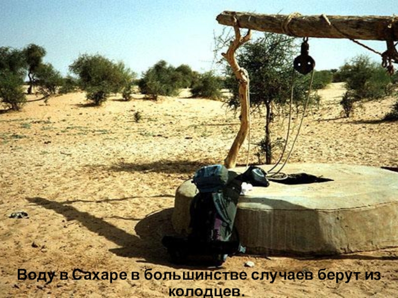 Слайд 18Воду в Сахаре в большинстве случаев берут из колодцев.