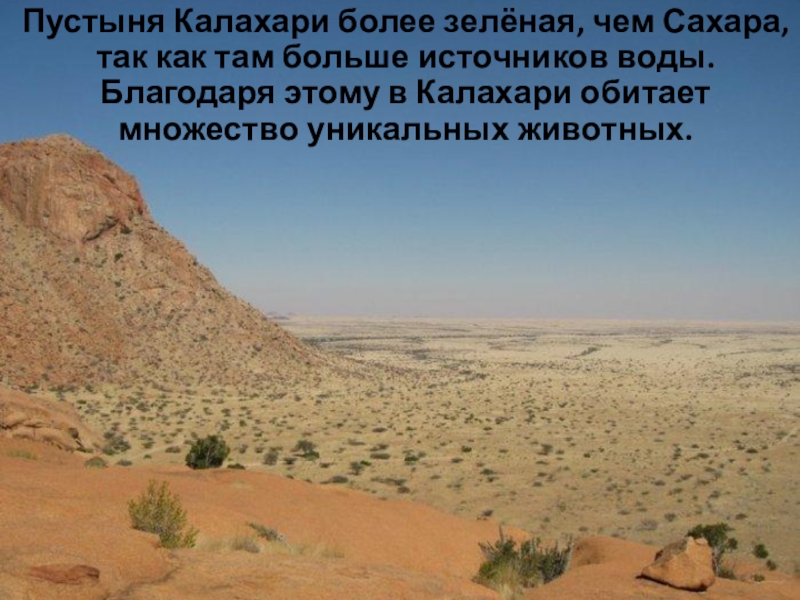 Слайд 31 Пустыня Калахари более зелёная, чем Сахара, так как там