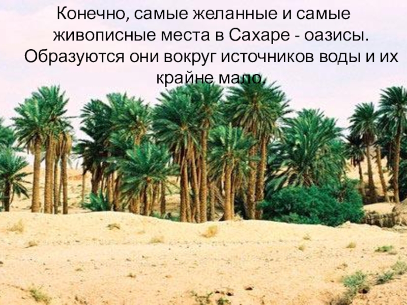 Слайд 17Конечно, самые желанные и самые живописные места в Сахаре - оазисы.