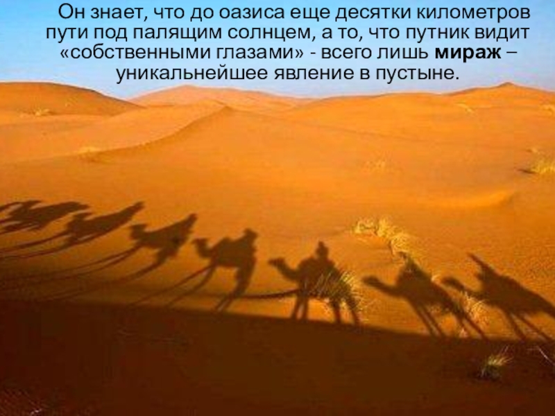 Слайд 24 Он знает, что до оазиса еще десятки