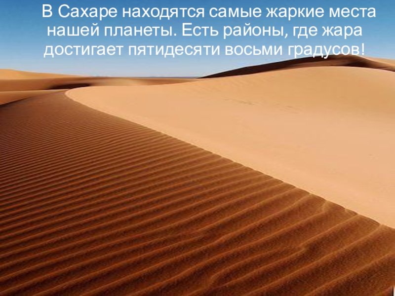 Слайд 11 В Сахаре находятся самые жаркие места нашей планеты.