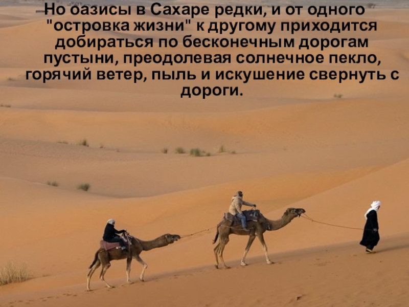 Слайд 22Но оазисы в Сахаре редки, и от одного "островка жизни" к