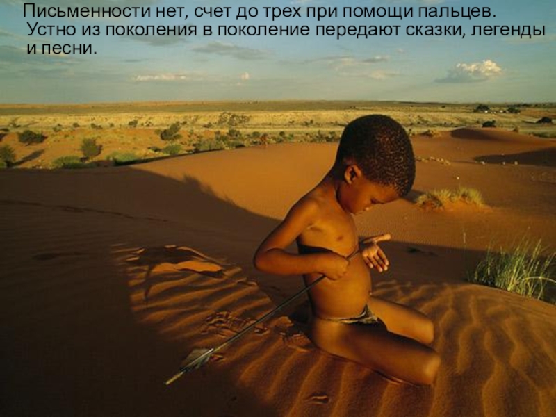 Слайд 43 Письменности нет, счет до трех при помощи пальцев. Устно