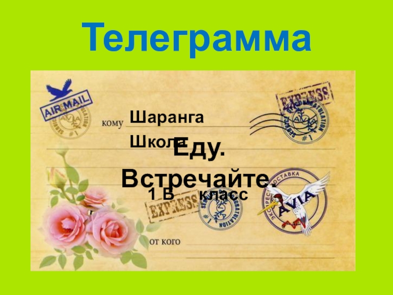 Телеграмма Еду.Встречайте.ШарангаШкола1 Б   класс