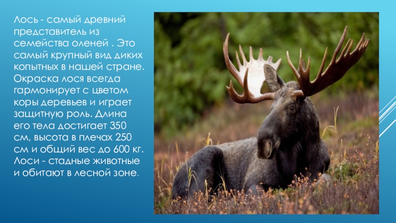 Лось - самый древний представитель из семейства оленей . Это самый крупный вид диких копытных в нашей