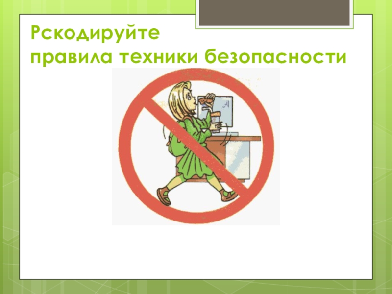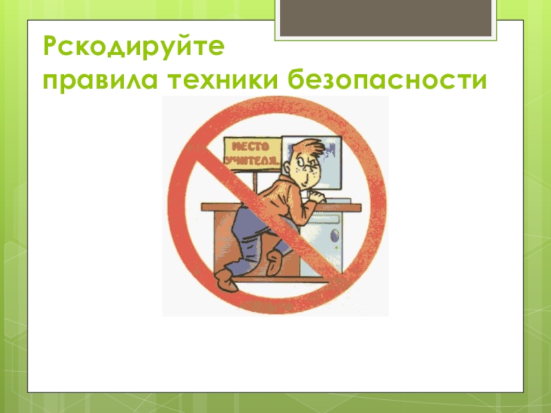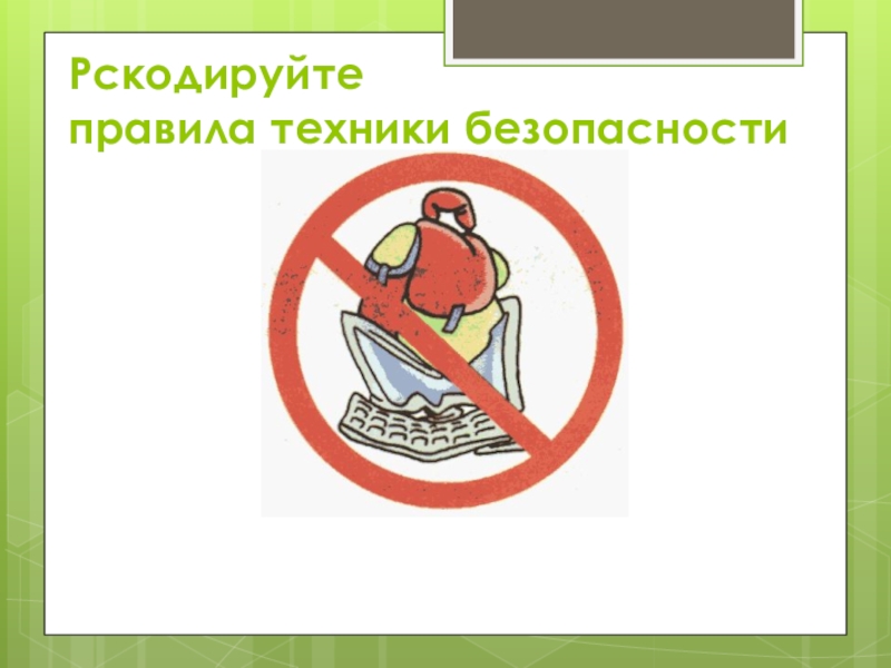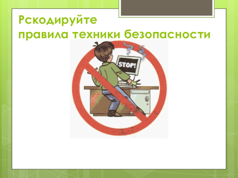 Задачи урока:Учебная: повторить правила поведения в компьютерномПроверить знания о способах кодированияРазвивающая: развивать интерес к изучению информатики, внимание,