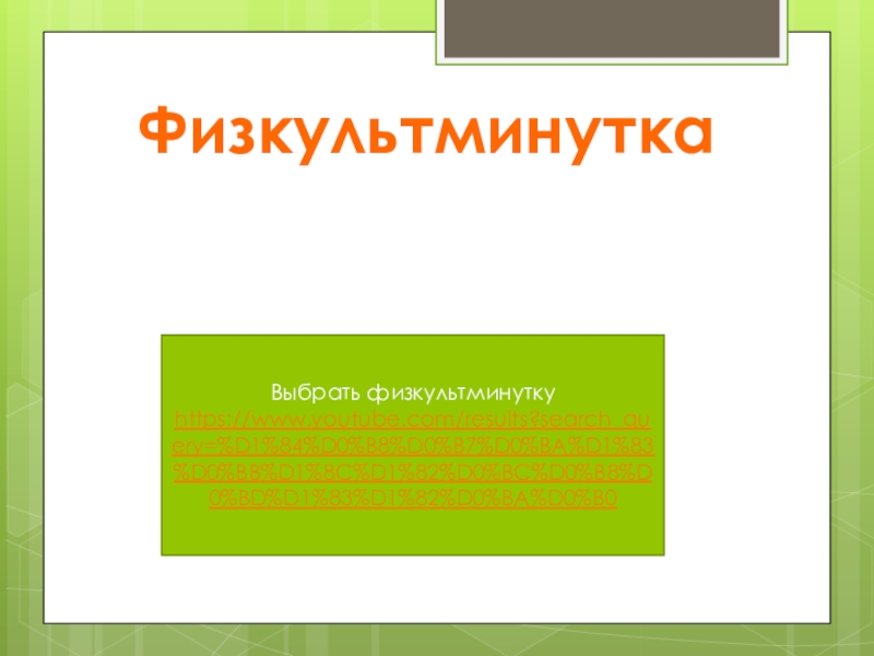 ФизкультминуткаВыбрать физкультминуткуhttps://www.youtube.com/results?search_query=%D1%84%D0%B8%D0%B7%D0%BA%D1%83%D0%BB%D1%8C%D1%82%D0%BC%D0%B8%D0%BD%D1%83%D1%82%D0%BA%D0%B0