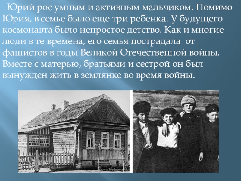Слайд 5  Юрий рос умным и активным мальчиком. Помимо Юрия, в семье