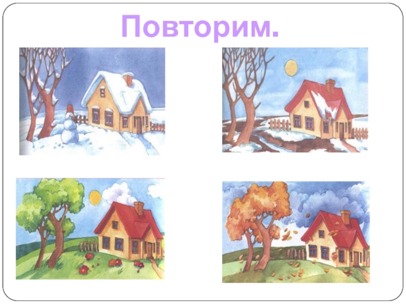 Первой к нам зима идет, Новый год она ведет. За зимой – второй – весна. Говорят: «Весна