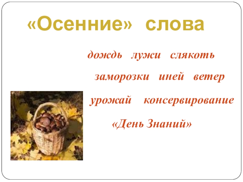«Осенние»  словадождь  лужи  слякоть          заморозки