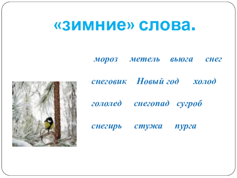 «зимние» слова.  мороз   метель  вьюга   снег  снеговик  Новый год