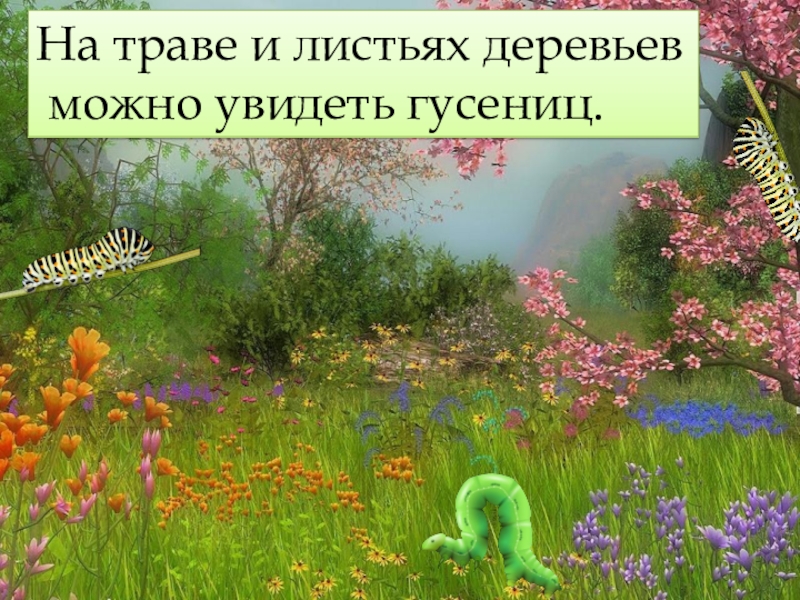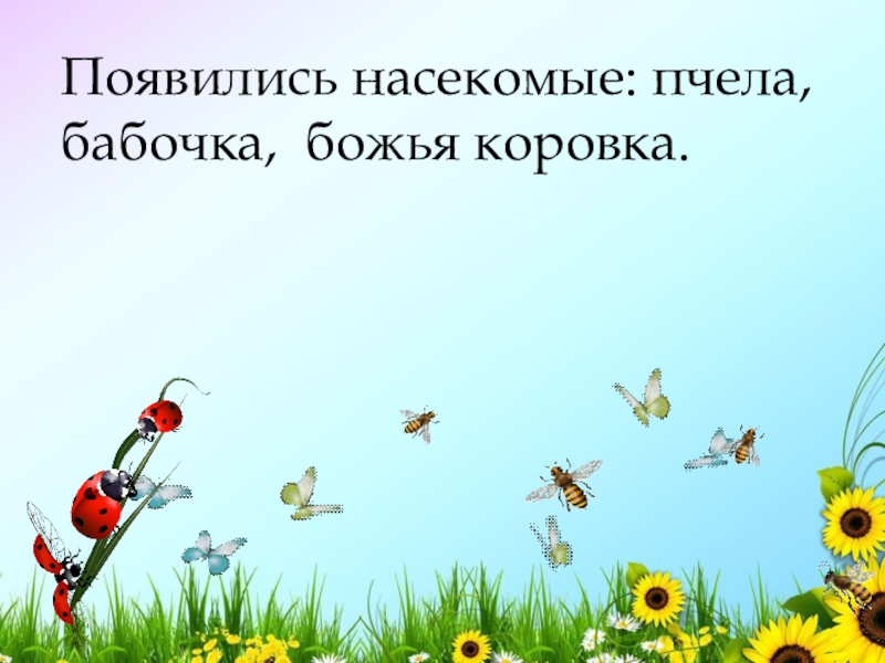 Слайд 14Появились насекомые: пчела, бабочка, божья коровка.